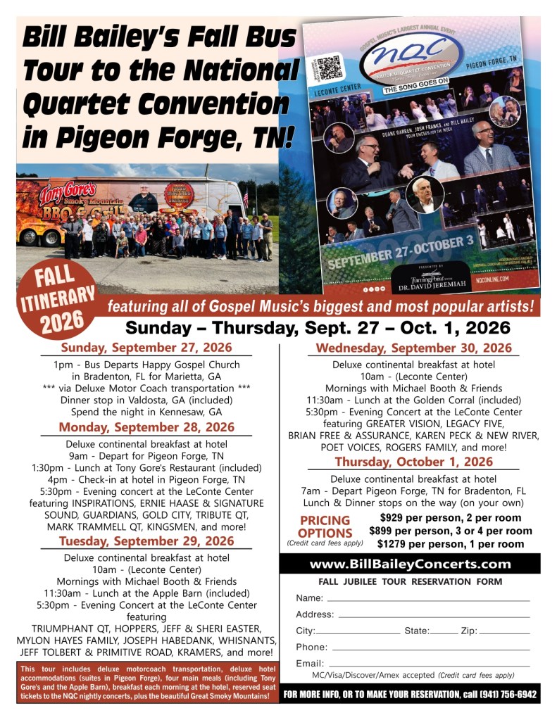 Bill Bailey’s Fall Bus Tour to NQC & Pigeon Forge!
